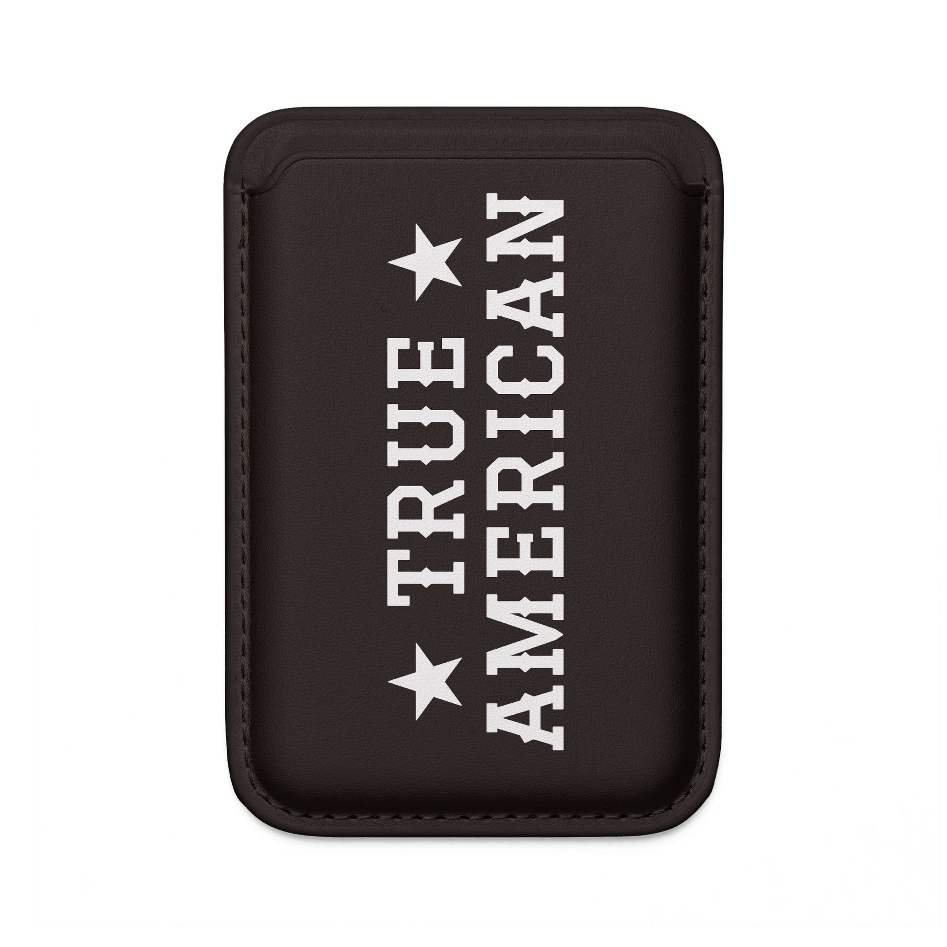 A slim, vegan leather MagSafe wallet that carries your essentials with confidence. The bold “TRUE AMERICAN” design sits crisp against the deep black PU surface, made possible by vibrant, high-definition printing. Thin and light, it snaps to your phone with a quick-release magnet yet holds up to two cards securely. It’s the kind of everyday carry that feels rugged and intentional — a small statement that fits in your pocket, your routine, and your stance.